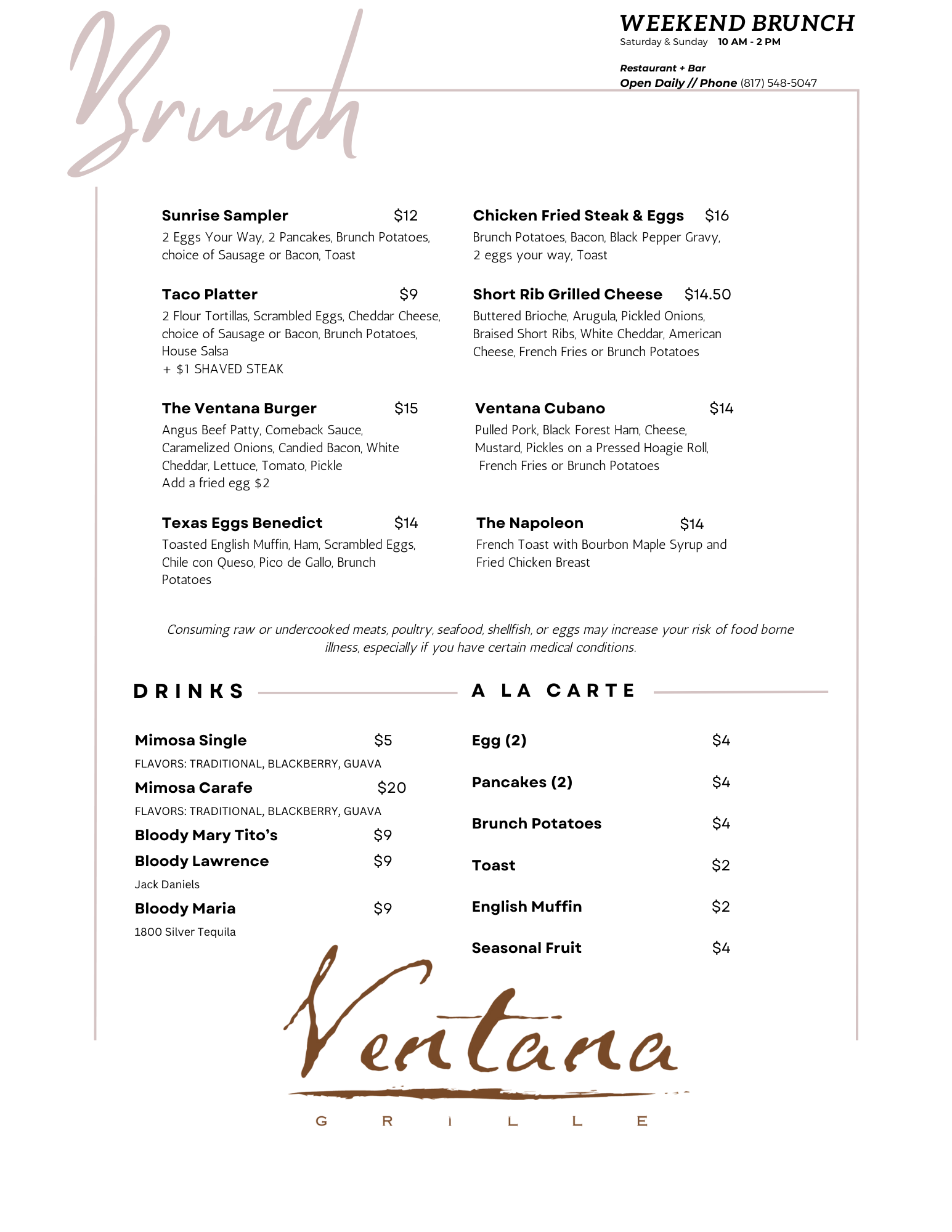 Welcome to Ventana Grille, located inside the clubhouse of Tierra Verde Golf Club. Ventana means “window” in Spanish and the windows of Ventana Grille offer a spectacular view of Tierra Verde. You can also dine outside on the patio and enjoy glimpses of golf and nature coming together in harmony. Whether interested in weekend brunch, a casual lunch, or a romantic dinner, Ventana Grille welcomes you to our neighborhood restaurant. Caterings, private parties, receptions and special requests are welcome!